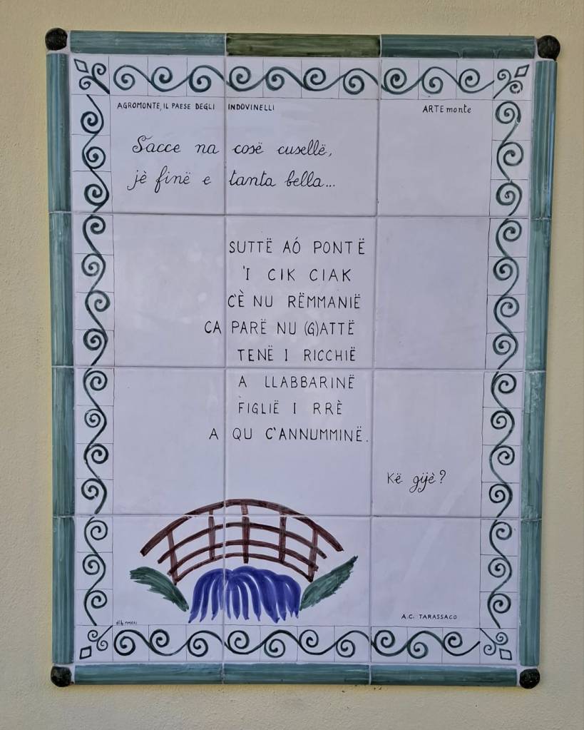 iè ffinë e tanda bbèlla…”, so una cosa cusella, che è fine e molto bella: è l’introduzione di ogni indovinello agromontese, indovinelli che vanno oltre il significato apparente delle parole.