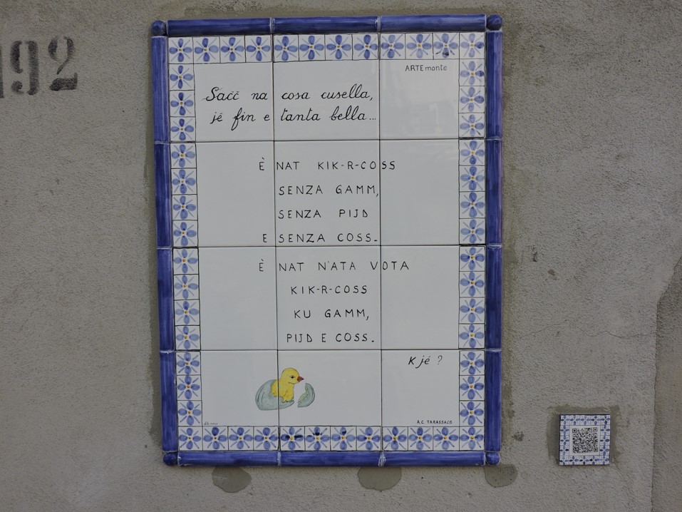 The riddle represents a ‘double birth’: first the egg and then, after hatching and subsequent hatching, the chick with GGAMMË, PIÉDË AND CÒSSË.