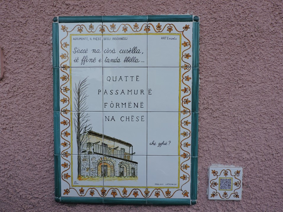 “Saccë na còsa cusèlla, iè ffinë e tanda bbèlla…”, so una cosa cusella, che è fine e molto bella: è l’introduzione di ogni indovinello agromontese, indovinelli che vanno oltre il significato apparente delle parole.