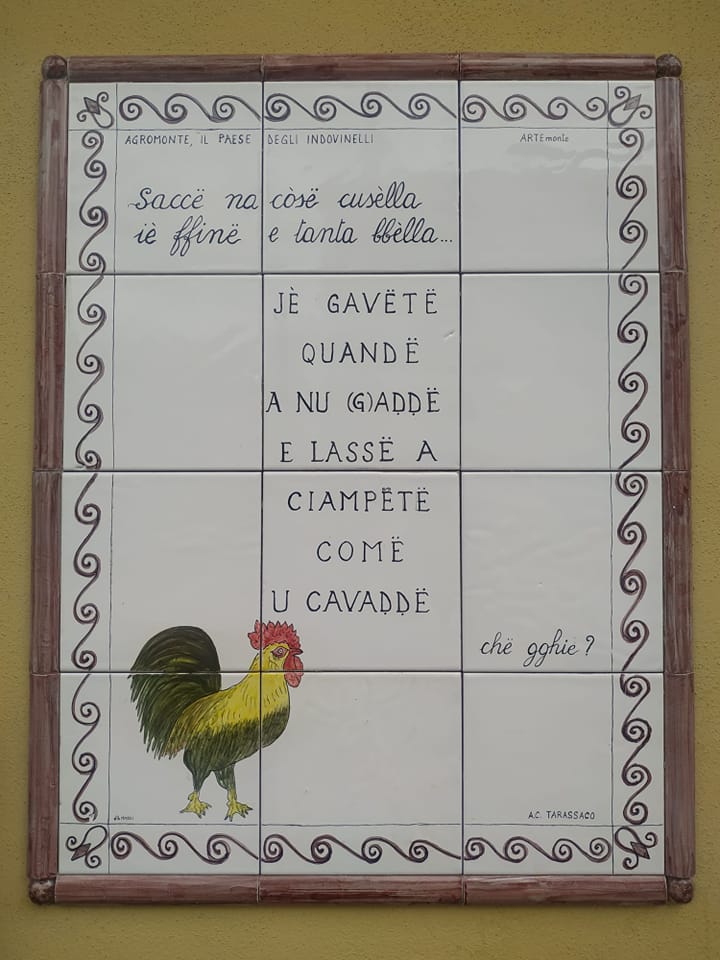 “Saccë na còsa cusèlla, iè ffinë e tanda bbèlla…”, so una cosa cusella, che è fine e molto bella: è l’introduzione di ogni indovinello agromontese, indovinelli che vanno oltre il significato apparente delle parole.