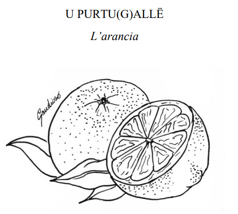 L’indovinello paragona l’arancia (U PURTU(G)ALLË) a un fasciatoio contenente all’interno nove bambini, i nove spicchi. Una cosa cusella molto “materna”