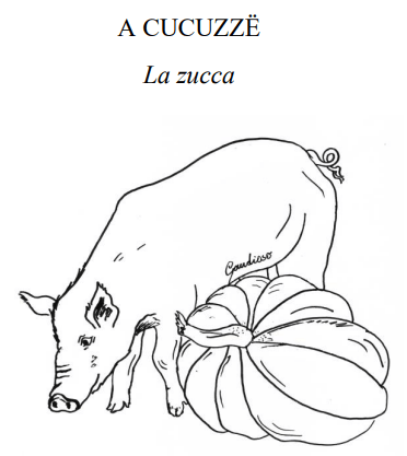 La zucca (CUCUZZË) ha solitamente l’altezza di uno sgabello e la polpa al suo interno ha una consistenza simile proprio al lardo del maiale.