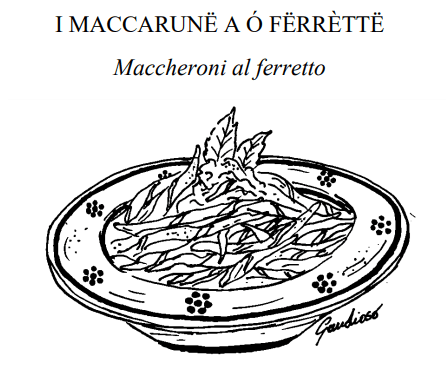 El acertijo parece ser ostensiblemente una escena explícita… ¡de amor desenfrenado! En realidad, describe el proceso de preparación de los maccheroni al ferretto, un formato de pasta de Lucania. El ferretto se introduce en la pasta, se frota contra la ŠCANATURË (mesa de madera) y, finalmente, con un movimiento de muñeca, se retuerce para dar a la pasta su característica forma de espiral