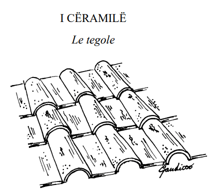 La pluie est comparée à de l’urine ; les tuiles représentent la “compagnie”, qui transporte la pluie jusqu’au CAPURẼLË, le canal de drainage, créant ainsi un écoulement semblable à celui d’une rivière.