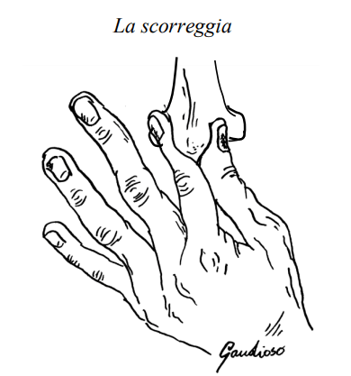 L’indovinello paragona il fondoschiena ad una pistola “scoppiettante”, che “spara” flatulenze in direzione dei piedi e che giungono fino al naso. L’aggettivo VALORÒSË, invece, fa riferimento al “valore olfattivo”… della flatulenza!