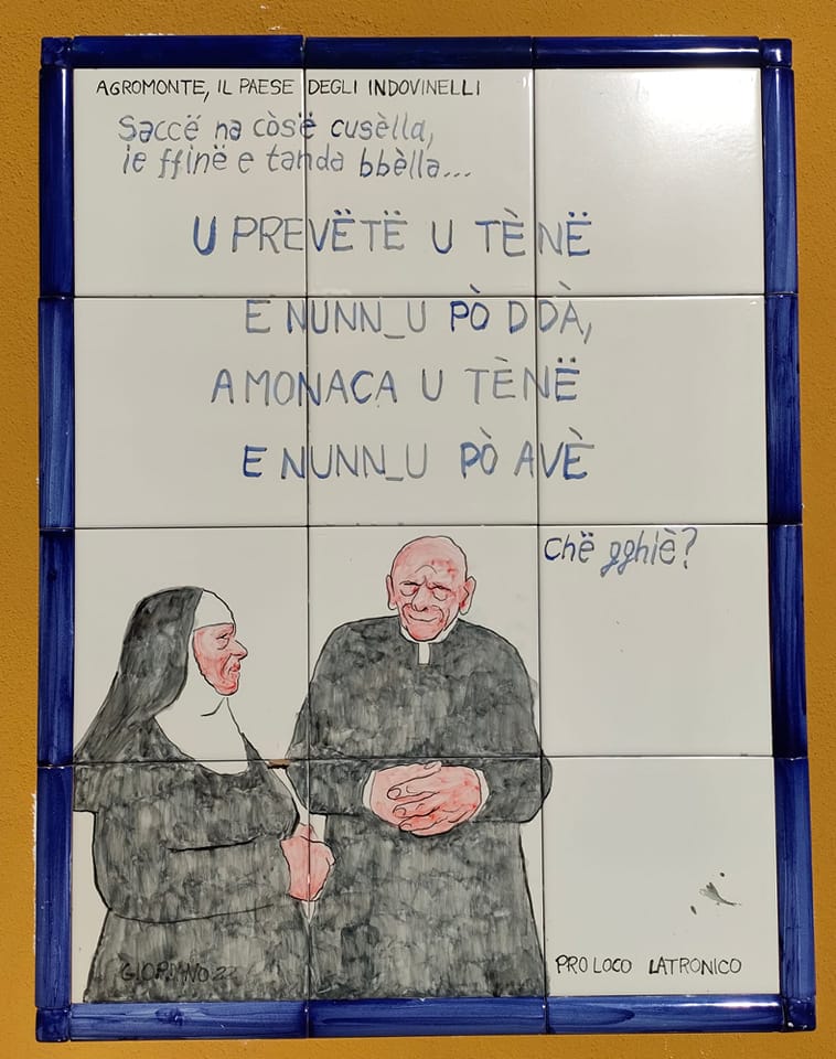 “Saccë na còsa cusèlla, iè ffinë e tanda bbèlla…”, so una cosa cusella, che è fine e molto bella: è l’introduzione di ogni indovinello agromontese, indovinelli che vanno oltre il significato apparente delle parole.